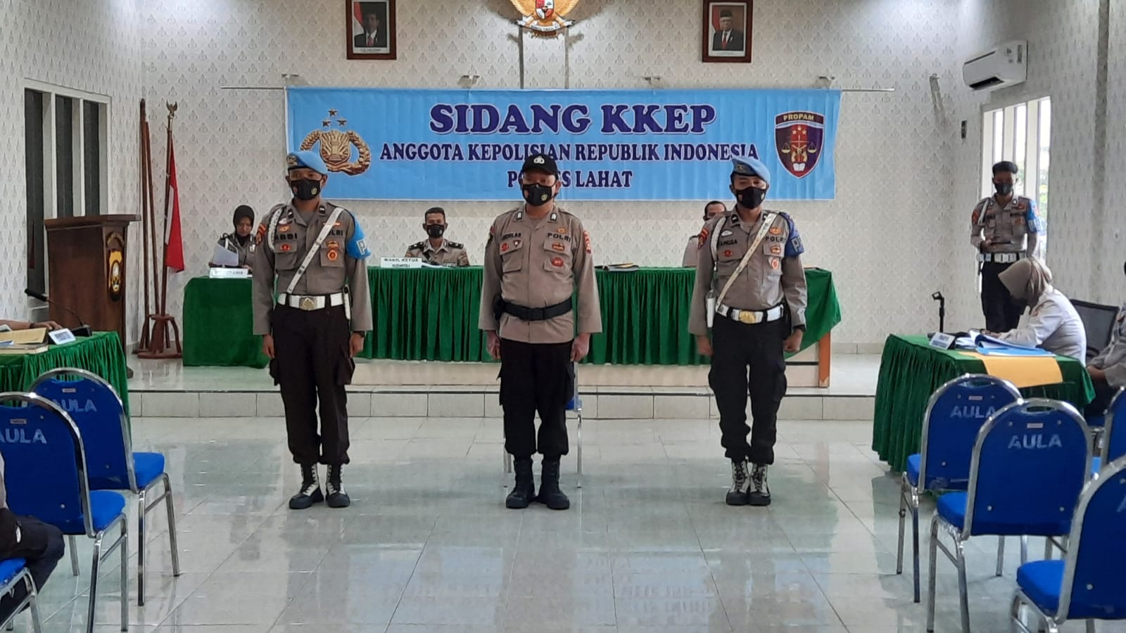 KATANDA.ID, Lahat – Bertempat di Aula Mapolres Lahat Waka Polres Kompol Feby Pebriana SIK memimpin sidang Kode Etik Profesi Polri (KKEP) terhadap tiga anggota Polres Lahat dengan Pendamping Sidang Kompol M Nuh selaku Kabag Sumber Daya Manusia (SDM) dan Kompol Berlianman Telaubanua SE, Kamis (12/5).