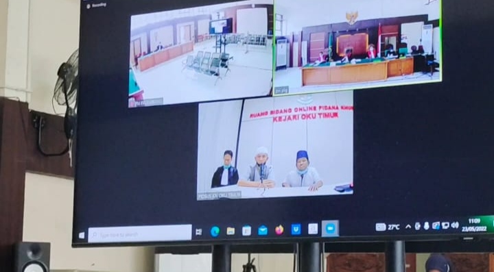 Dihadapan Majelis Hakim yang diketuai Hakim Mangapul Manalu SH MH , JPU OKUT, membacakan dakwaan terhadap kedua terdakwa secara virtual di PN Tipikor Palembang, Senin (23/5/2022).