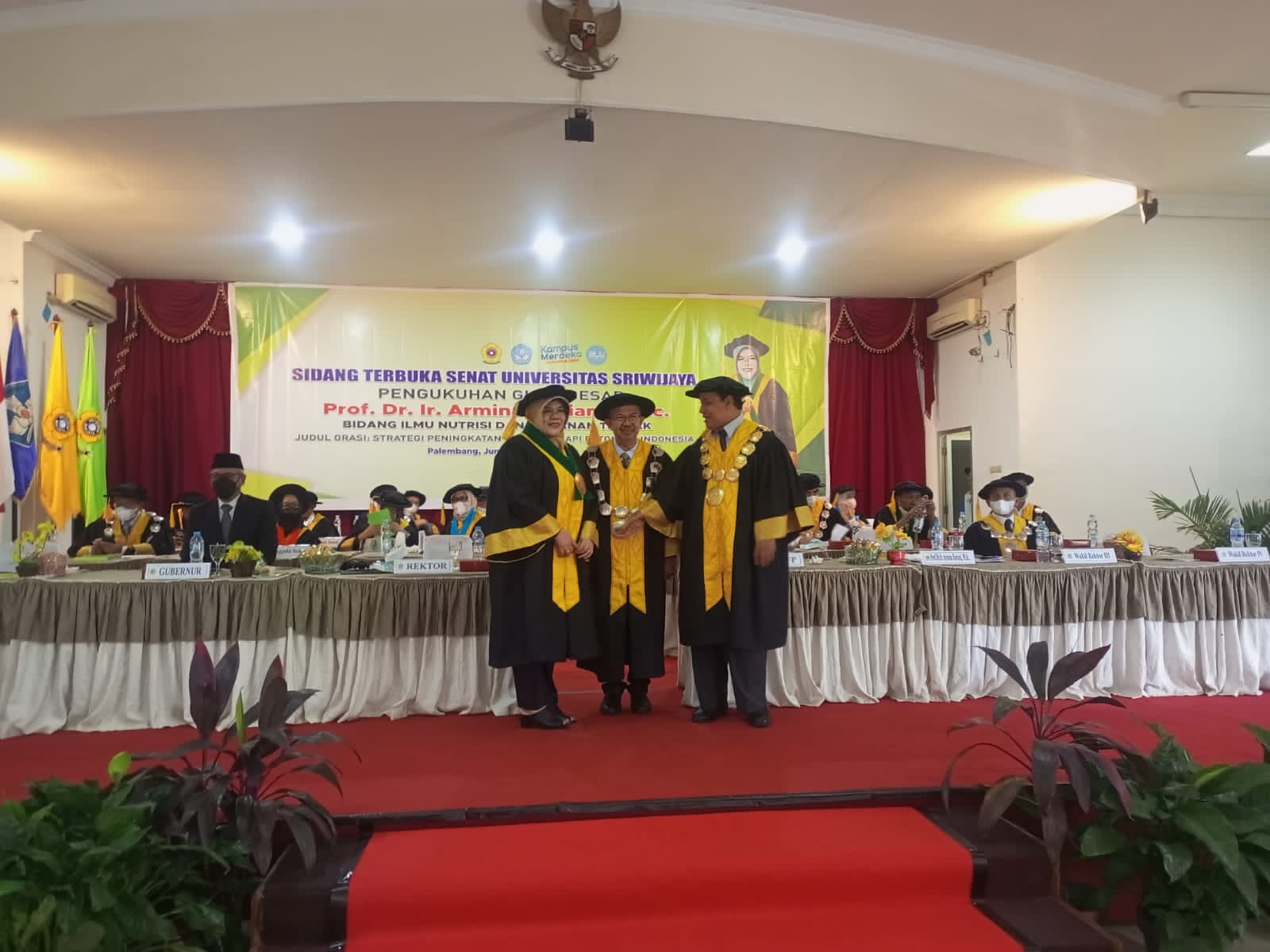 KATANDA.ID, Palembang – Pengukuhan Guru Besar Prof Dr Ir Armina Farian MSc dalam jabatan Guru Besar Bidang Ilmu Nutrisi dan Makanan Ternak pada Fakultas Pertanian Unsri digelar di Gedung Serbaguna Program Pascasarjana, Jumat (24/6/2022).