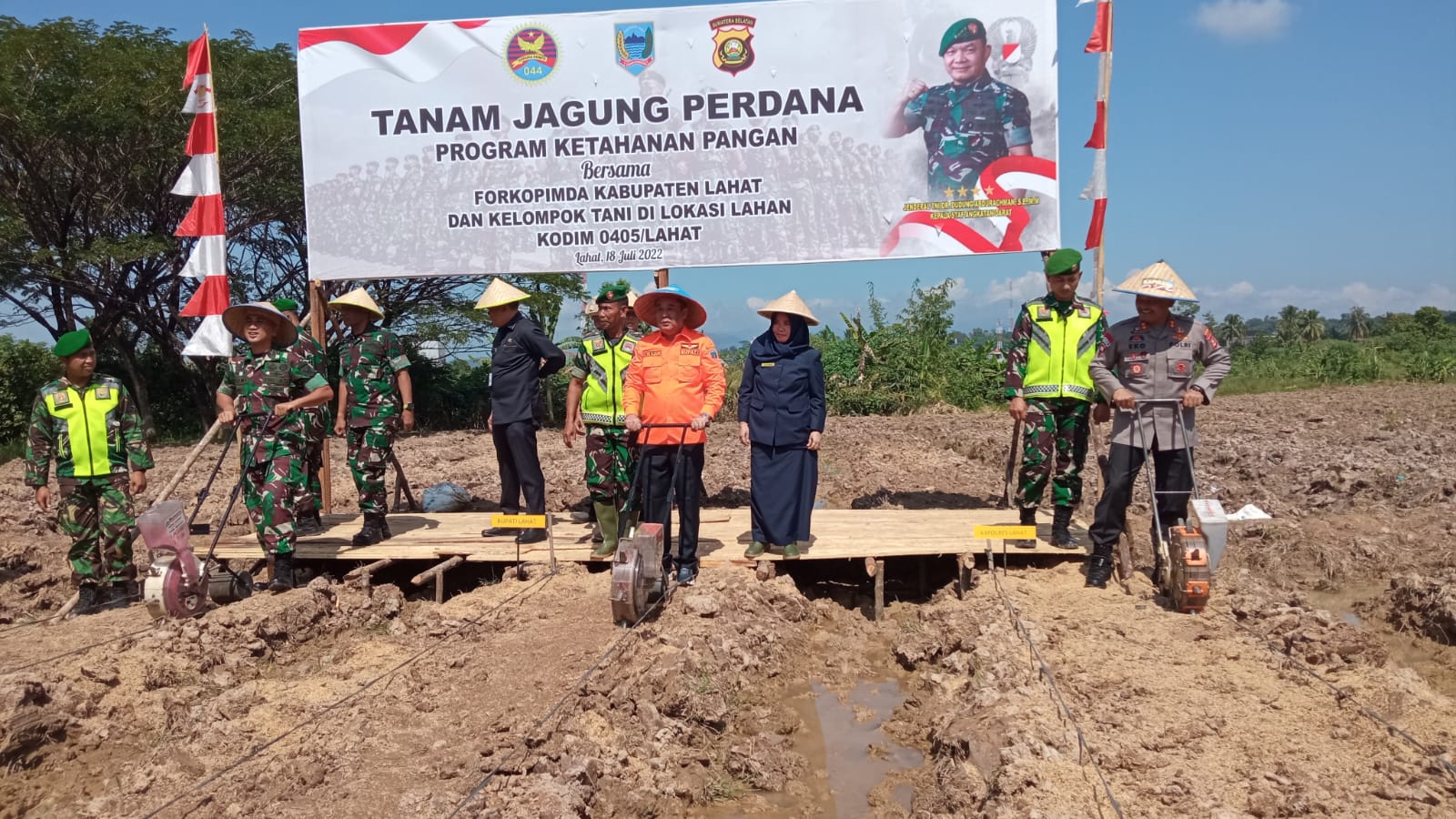 Dandim 0405 Lahat Letkol Tony Oli Priyono,Sik mengatakan, penanaman bibit Jagung merupakan program ketahanan TNI untuk membantu pemerintah khususnya Pemkab Lahat dalam mensejahterakan masyarakat. Untuk saat ini, lahan seluas 5,5 hentare yang dikelola jadi kebun Jagung merupakan milik TNI dan bibit dan pupuk berasal dari bantuan Pemkab Lahat.