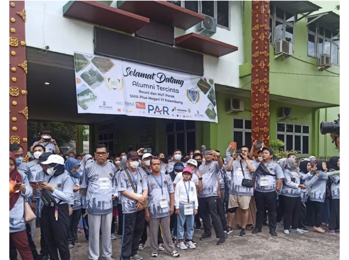 Seperti, Minggu (17/7) di gelar jalan sehat yang dilepas langsung oleh Kepala Dinas Pendidikan (Kadisdik) Provinsi Sumsel Drs H Riza Pahlevi,MM didampingi Kepala Sekolah (Kepsek) SMA Plus Negeri 17 Palembang Dra. Purwiastuti Kusumastiwi, M.M dan Ketua Ikatan Alumni (IA) SMA Plus negeri 17 Palembang Hadian Bayu Pandhu Winata didampingi Ketua Panitia Reuni dan HUT Perak Muzhar Apandi.