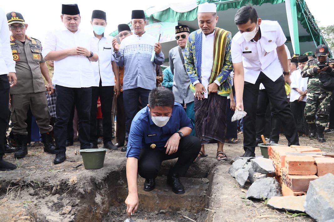 KATANDA.ID, Muara Enim – Didampingi Ketua TP PKK Provinsi Sumsel Hj. Feby Deru, Gubernur Sumsel H. Herman Deru melakukan peletakan batu pertama pembangunan Masjid Ponpes Al Jailaniyah di Desa Paya Bakal Kecamatan Gelumbang, Kabupaten Muara Enim, Rabu (27/7) siang.