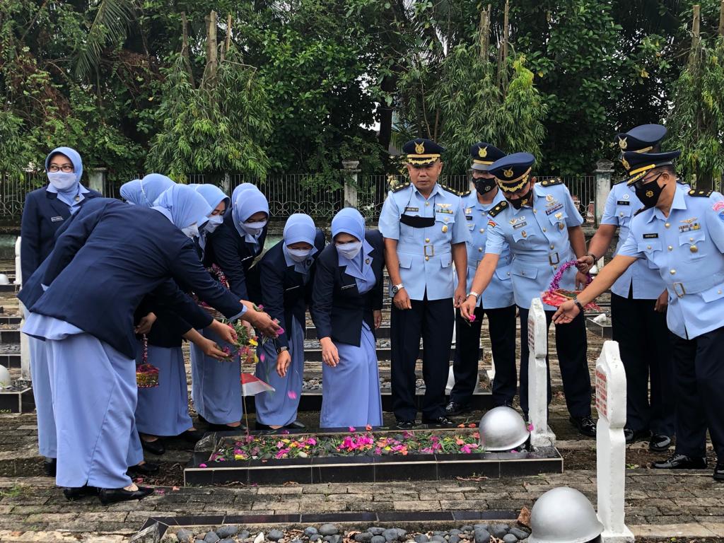Komandan Lanud Sri Mulyono Herlambang Kolonel Pnb Hermawan Widhianto S.E., M.M., yang diwakilkan oleh Kepala Dinas Personel (Kadispers) Lanud Sri Mulyono Herlambang (SMH) Letkol Adm Hendra Wadi, S.P., pimpin ziarah rombongan tersebut.