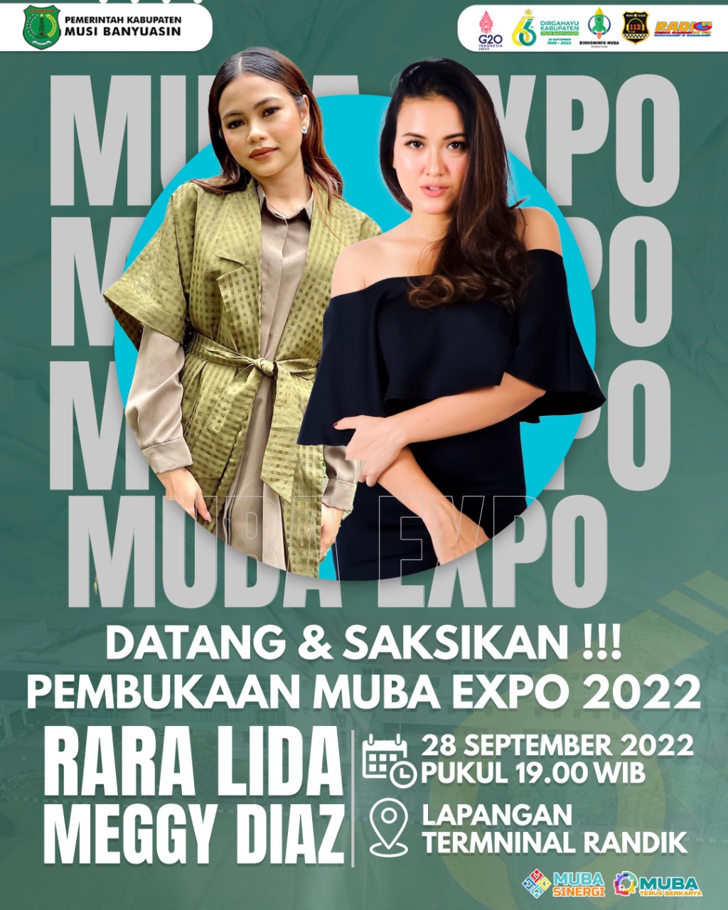 KATANDA.ID, Muba – Malam puncak Hari Ulang Tahun (HUT) Kabupaten Musi Banyuasin (Muba) ke-66 bakal berlangsung meriah, pasalnya selain pembukaan Muba Expo 2022, Pemkab Muba akan mengundang artis ibu kota asal Prabumulih Sumatera selatan Rara Lida Indosiar dan Artis Pedangdut Meggy Riaz.