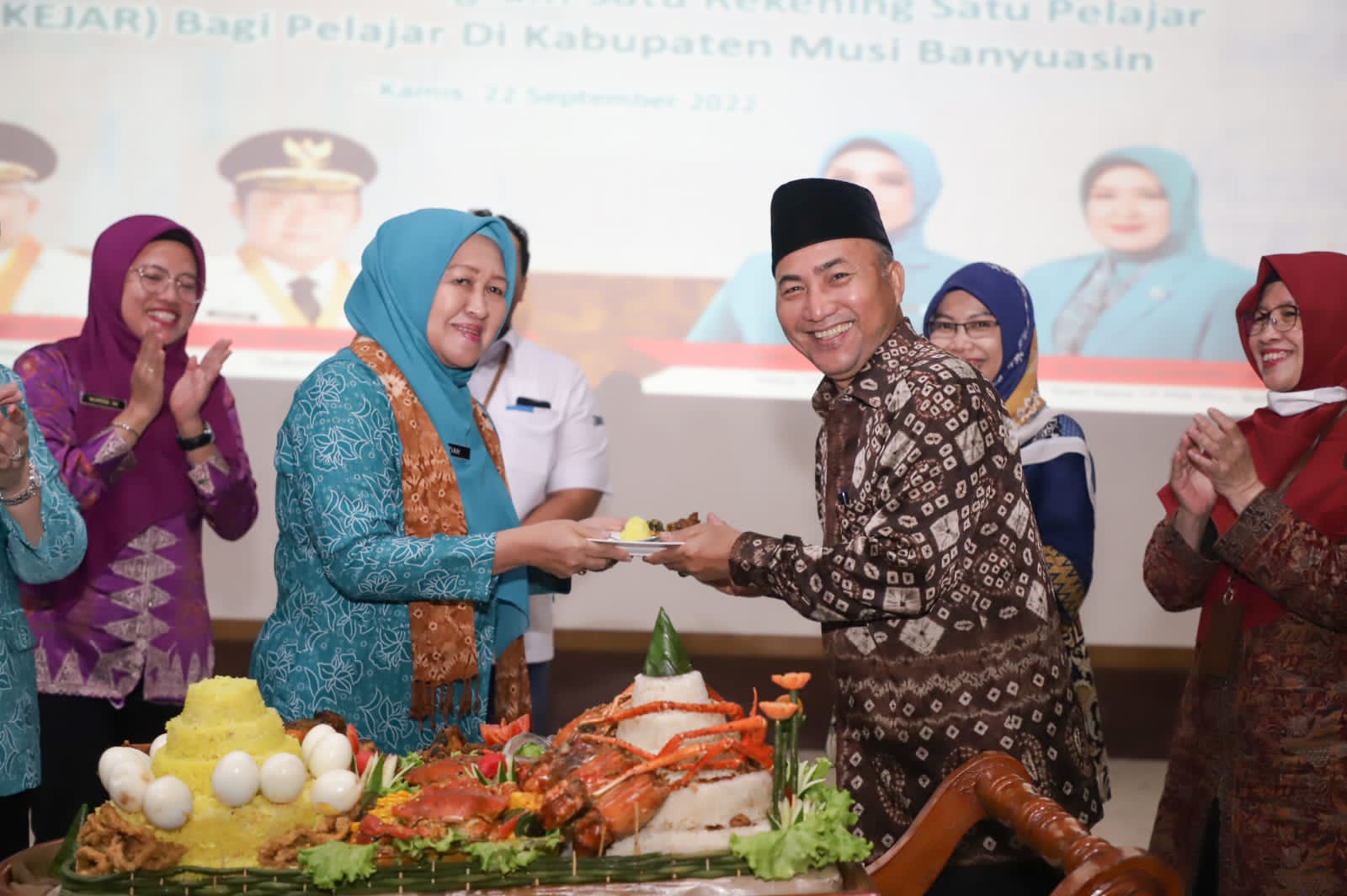 KATANDA.ID, Muba – Pj Bupati Musi Banyuasin (Muba), H Apriyadi bersama Wakil Ketua Tim Penggerak (TP) PKK Provinsi Sumatera Selatan (Sumsel) Fauziah Mawardi Yahya dan Ketua TP PKK Kabupaten Mura Hj Asna Aini Apriyadi menghadiri Roadshow Literasi dan Inklusi Keuangan Optimalisasi Akses Keuangan Kepada UMKM dan Pelajar Daerah TPAKD Provinsi Sumsel Tahun 2022, di Opproom Pemkab Muba, Kamis (22/9/2022).