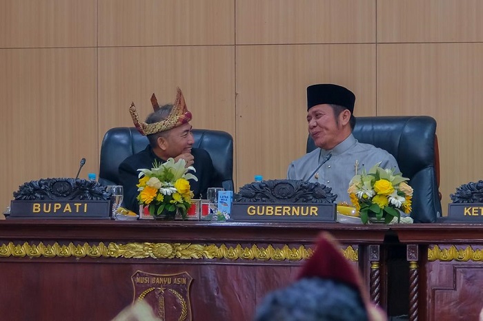 KATANDA.ID, Muba – Kabupaten Musi Banyuasin (Muba) genap menduduki usia ke-66 tahun tepat pada 28 September 2022. Dalam rangkaian Sidang Paripurna Istimewa DPRD Kabupaten Musi Banyuasin Dalam Rangka Peringatan Hari Jadi Kabupaten Musi Banyuasin ke-66 Tahun 2022 di Gedung DPRD Kabupaten Musi Banyuasin, Rabu (28/9/2022) dihadiri secara langsung Gubernur Sumsel Herman Deru dan Ketua DPRD Sumsel RA Anita Noeringhati.