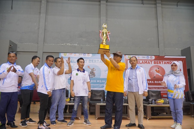 “Alhamdulillah para atlet Muba yang mengikuti Peparpeprov telah memberikan yang terbaik dan mencatat sejarah sebagai Kabupaten pertama yang membawa pulang piala bergilir Peparpeprov Sumsel,” kata Kepala Dinas Pemuda Olahraga dan Pariwisata Muba M Fariz SSTP MM didampingi Ketua NPC Muba Eko Tirta saat hadir pada acara Penutupan Peparpeprov.