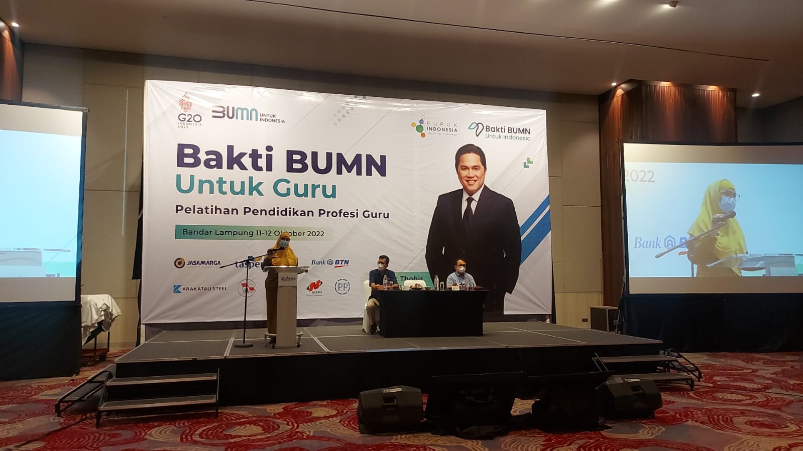 Program pelatihan Pendidikan profesi guru serta penggantian biaya ujian sertifikasi yang berlangsung 11 – 12 Oktober dilaksanakan berkolaborasi dengan delapan BUMN lain, dan PT Pupuk Indonesia mendapat tanggung jawab sebagai PIC provinsi Lampung. Peserta kali ini adalah guru yang telah memiliki pengalaman mengajar dan belum memiliki sertifikat.