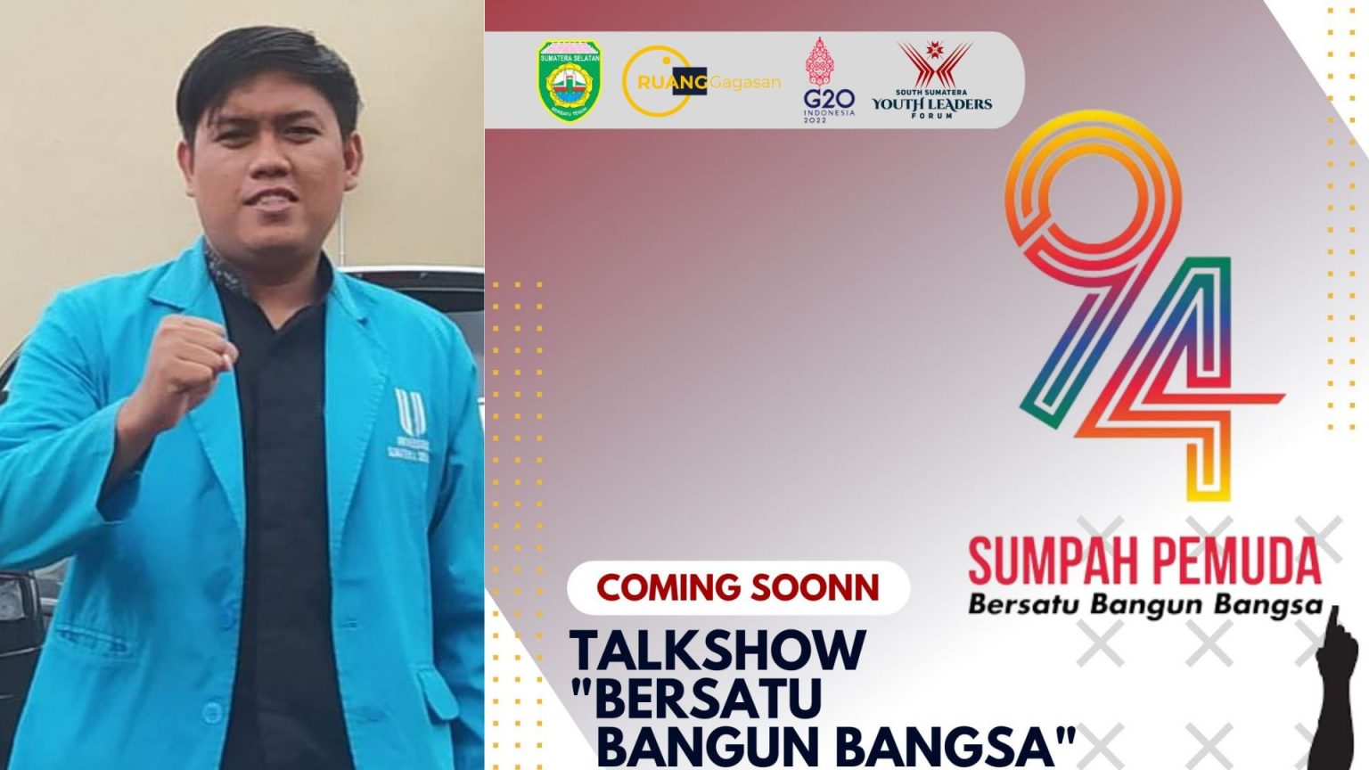 Andi Wiradinata Selaku Presiden Mahasiswa di Universitas Sumatera Selatan dan juga Ketua Pelaksana, mengatakan bahwa kegiatan talkshow South Sumatera Youth Leaders Forum ini dalam rangka memperingati Hari Sumpuh Pemuda dan sekaligus launching Pemuda Penggerak Sumsel Mandiri Pangan, Akan dilaksanakan di Kantor DPD RI Perwakilan Sumatera Selatan pada Senin (31 Oktober 2022).