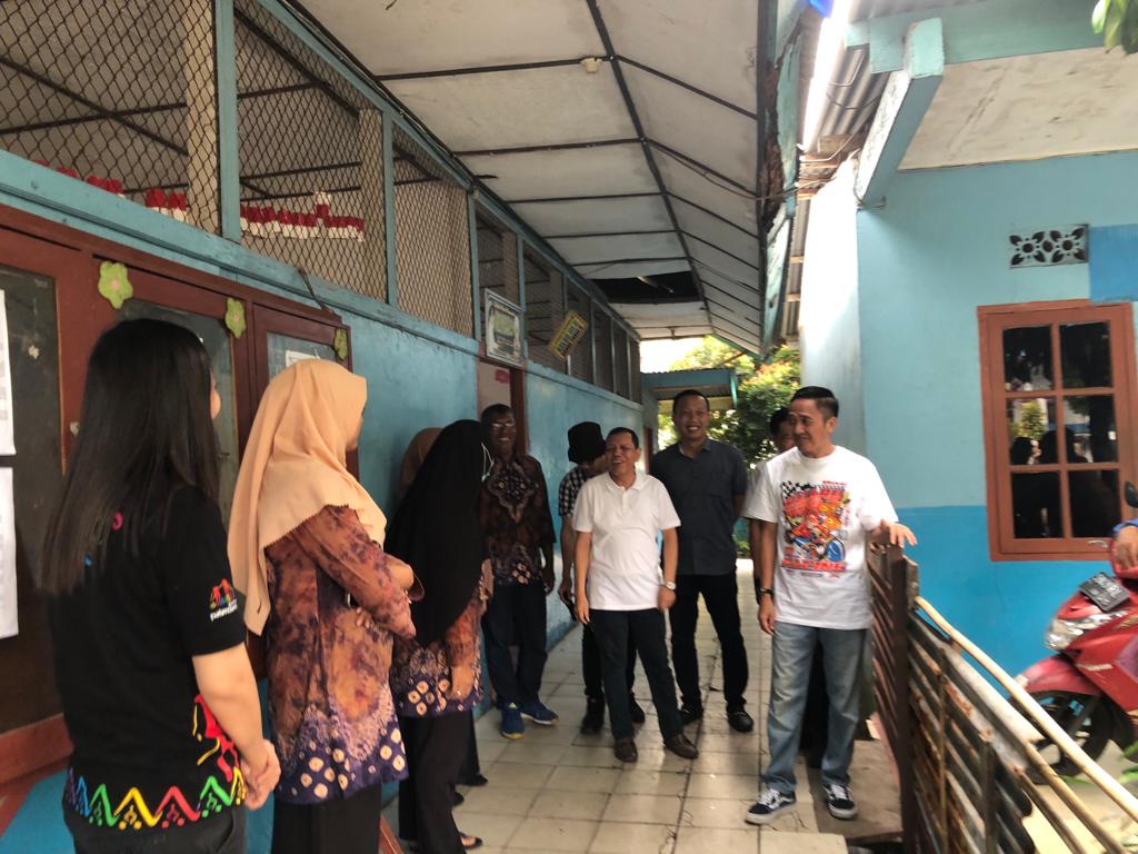 Mengenakan baju kaos tanpa kerah, bersama Kadisdik Ratu Dewa dengan cermat menelusuri setiap ruangan kelas yang ada, al hasil 3 ruangan kelas dan satu ruangan Urusan Kesehatan Sekolah (UKS) didapati untuk segera dilakukan renovasi.