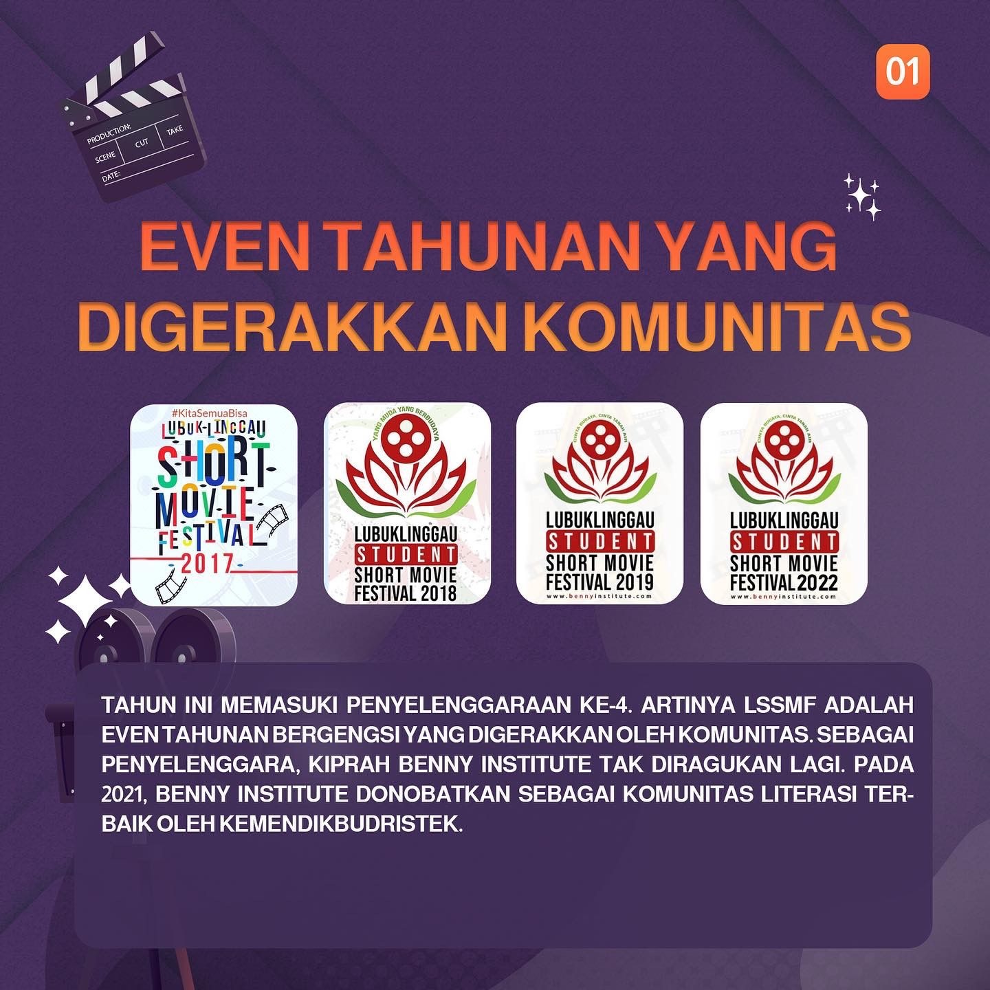 KATANDA.ID, Lubuklinggau – Festival film pendek Lubuklingga bertajuk Lubuklinggau Stundents Short Movie Festival (LSSMF) kembali digelar pada 2022. Tahun ini menjadi tahun keempat sejak LSSMF pertama kali diselenggarakan 2017 lalu oleh Benny Institute.