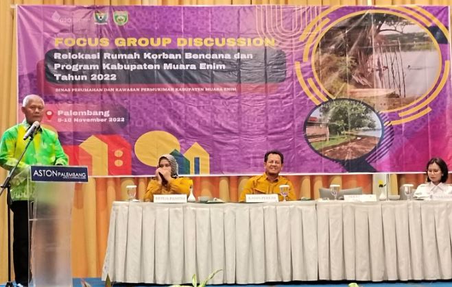 Pemerintah Kabupaten Muaraq Enim melalui Dinas Perumahan dan Kawasan Pemukiman menggelar Kegiatan FGD (Focus Group Discussion) Relokasi Rumah Korban Bencana dan Program Pemerintah Kabupaten Muara Enim Tahun 2022 di Hotel Aston Palembang, Rabu (9/11/2022).