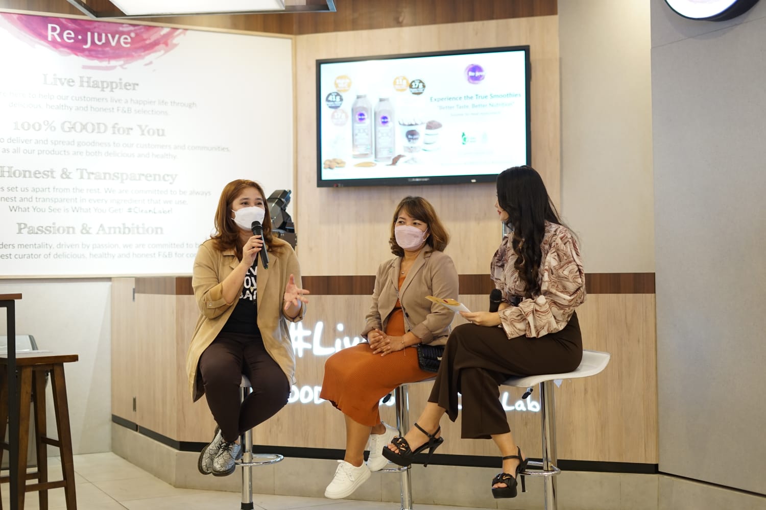 “Selain meningkatkan cita rasa sehingga lebih lezat dan lebih tinggi nutrisi pada varian Chocolate High Smoothies dan Chocolate High Almond Smoothies, Re.juve juga berinovasi dalam meluncurkan varian terbaru, yaitu Chocolate Mighty yang freshly made by order. Teksturnya mungkin seperti ice cream, namun Chocolate Mighty Re.juve merupakan alternatif dessert yang lebih sehat dan lezat, dan poin plus-nya, ini cukup mengenyangkan. Oleh karena itu, seperti varian smoothies lainnya, Chocolate Mighty ini pun juga cocok dijadikan sebagai meal replacement: sarapan, makan siang, maupun makan malam,” ujar Sari Siswarni, Associate Director of Sales and Marketing Re.juve dalam sesi talkshow ‘Experience The True Smoothies: Better Taste, Better Nutrition,” ujarnya, Rabu (9/11/2022)