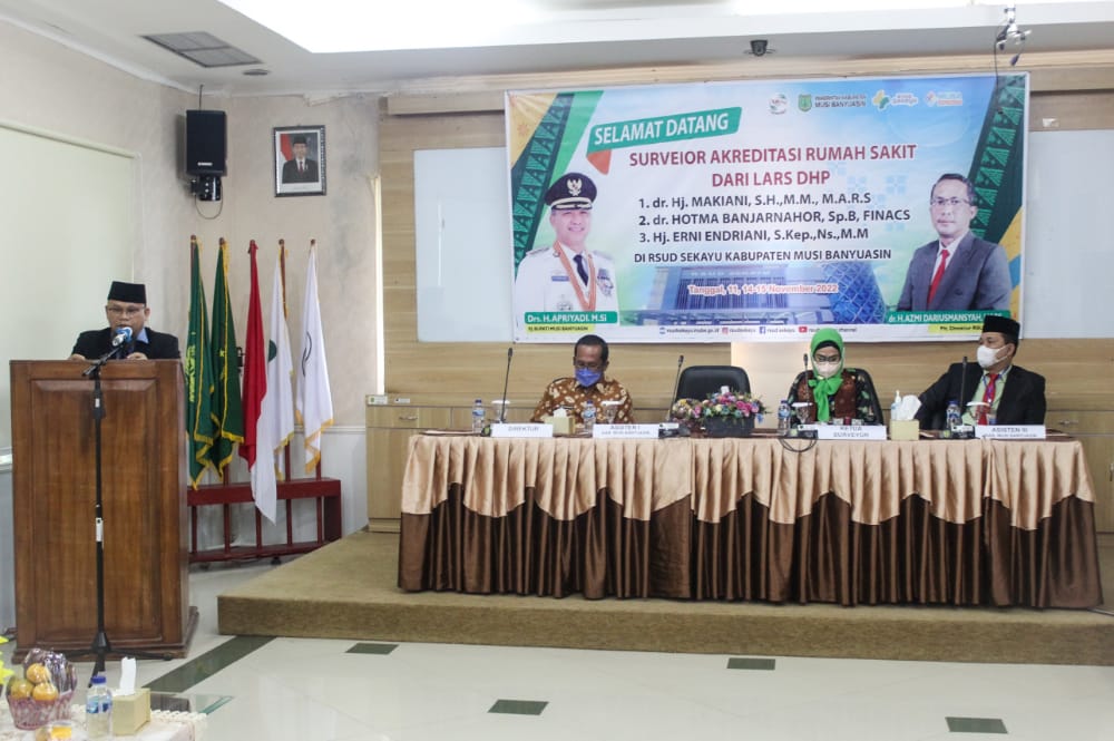 “Kami mengucapkan terima kasih atas kehadiran Tim Akreditasi LARS DHP untuk melakukan kegiatan survey akreditasi di RSUD Sekayu. Kami Pemkab Muba berharap adanya komitmen dari RSUD Sekayu untuk meningkatkan keselamatan dan kualitas asuhan terhadap pasien, keamanan lingkungan pelayanan, dan mengurangi resiko baik kepada pasien juga staf rumah sakit,”ungkapnya.