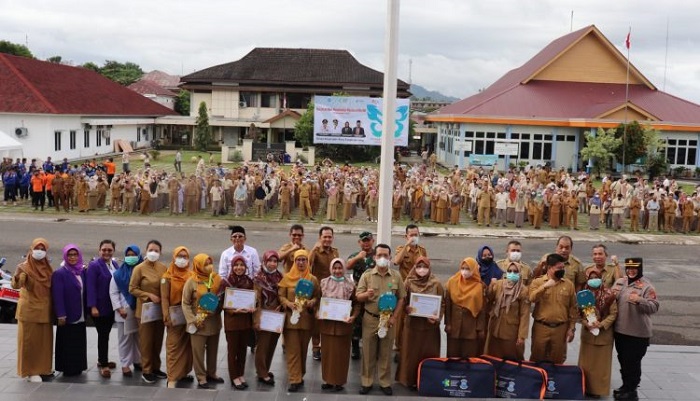 Asisten Pemerintahan dan Kesra, Akhmad Subekti menjadi inspektur upacara, membacakan sambutan Menteri Kesehatan pada HKN ke-58 tahun yang sudah banyak pencapaian pembangunan kesehatan diraih, khususnya saat menghadapi pandemi Covid-19.