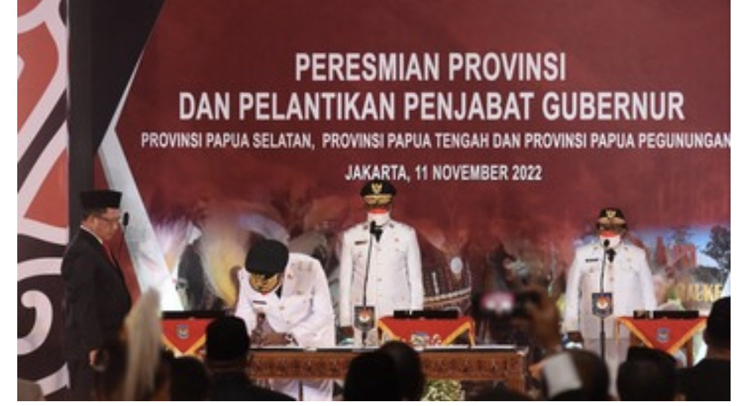 Sebagai informasi, Mendagri Tito Karnavian telah meresmikan tiga provinsi baru di Papua yakni Papua Pegunungan, Papua Tengah dan Papua Selatan di Kantor Kemendagri, Jakarta, Jumat (11/11). Pada acara itu, Tito juga melantik tiga penjabat Gubernur di tiga DOB Papua tersebut.