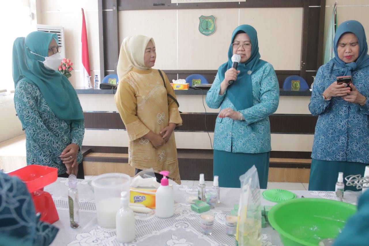 “Kita semua hari ini sudah melihat langsung bagaiman proses pembuatan produk berupa Sabun Sereh Wangi, Sabun Tangan (Handsanitizer), Lilin Aroma Terapi dan Minyak Urut Sereh Wangi. Kalau dilihat prosesnya tidak terlalu sulit, asal kita mau. Oleh karena itu kita berharap agar TP PKK Kecamatan dapat berbagi ilmu dengan ibu-ibu PKK di kecamatan lainnya juga,”ucap Asna Aini.