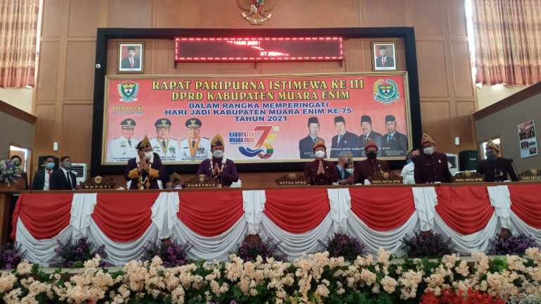 KATANDA.ID, Muara Enim – Dalam rangka memperingati Hari Jadi Kabupaten Muara Enim ke-76 Tahun 2022, Dewan Perwakilan Rakyat Daerah (DPRD) Kabupaten Muara Enim menggelar Rapat Paripurna Istimewa ke VI di Ruang Rapat Paripurna Gedung DPRD Kabupaten Muara Enim, Senin (21/11).