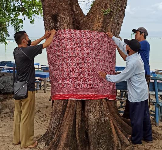 KATANDA.ID, Pangkalpinang – Sepekan lalu Dinas Pariwisata Kota Pangkalpinang memasang kain cual pada batang pohon yang terletak di bibir pantai lahan pemerintah sekitar 500 meter. Kain tersebut menghiasi sekitar 40 pohon berukuran besar maupun sedang.