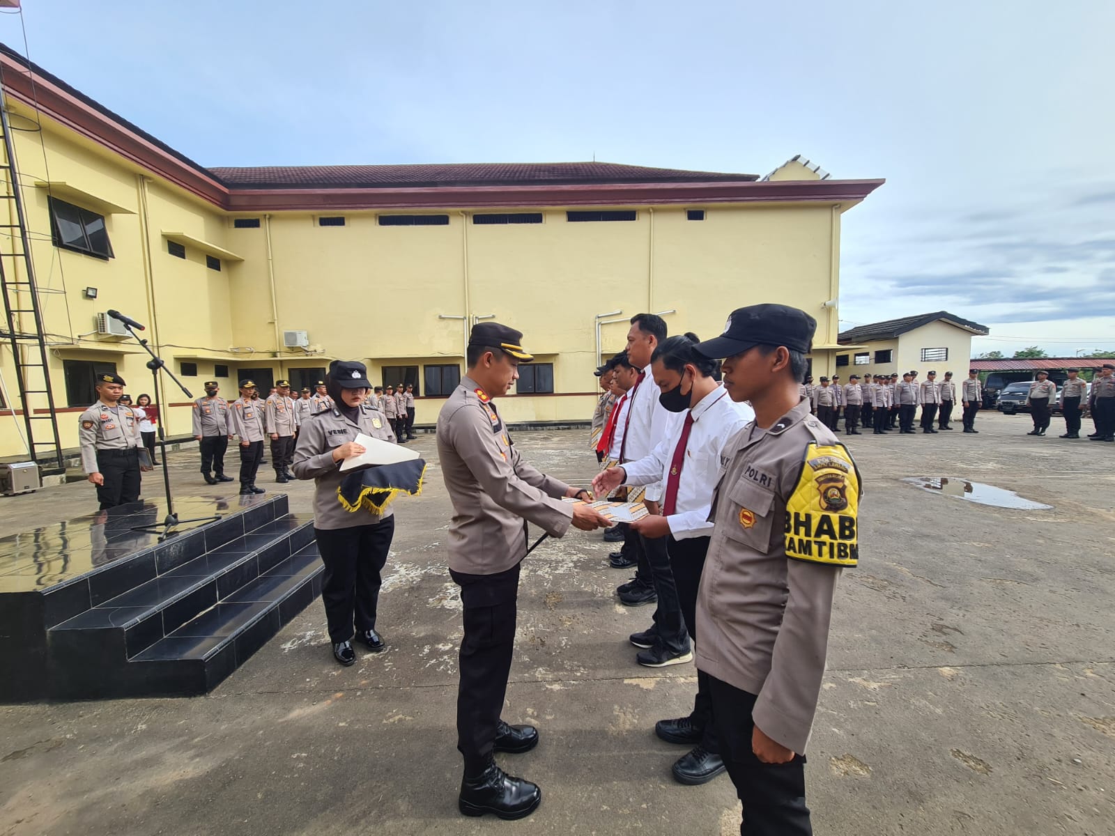 Di halaman Polres Empat Lawang Kapolres AKBP Helda Prayitno, M.M memberikan penghargaan kepada anggota