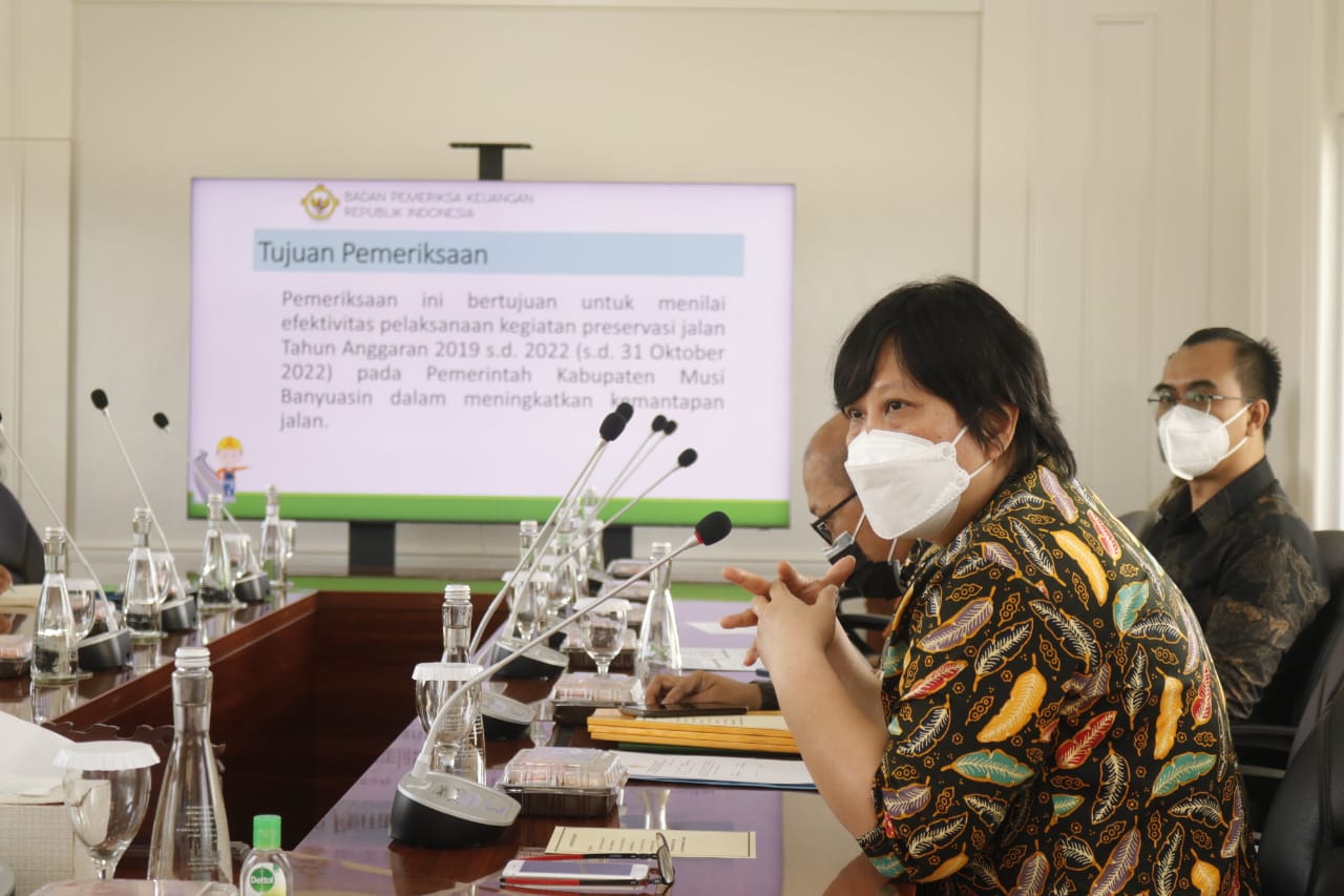 “Kami melakukan pemeriksaan ini bertujuan untuk menilai efektivitas pelaksanaan kegiatan preservasi jalan Tahun Anggaran 2019-2022 (31 Oktober 2022) atau selama 3 tahun,” ungkap Wakil Penanggung Jawab Tim Pemeriksa BPK RI Perwakilan Sumsel, Roes Nelly saat Exit Meeting Pemeriksaan Kinerja atas Efektivitas Pelaksanaan Kegiatan Preservasi Jalan TA 2019-2022 (31 Oktober 2022) pada Pemkah Muba dan Instansi Lainnya, Selasa (22/11/2022) di Kantor Perwakilan Muba di Palembang.