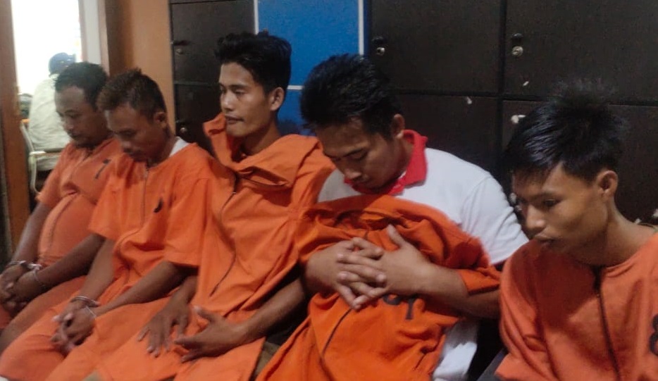 Kelima tersangka ini merupakan warga Desa Baru, Kecamatan Rambutan, Banyuasin, sementara korban rupanya masih satu desa dengan korban yakni Jata (58).