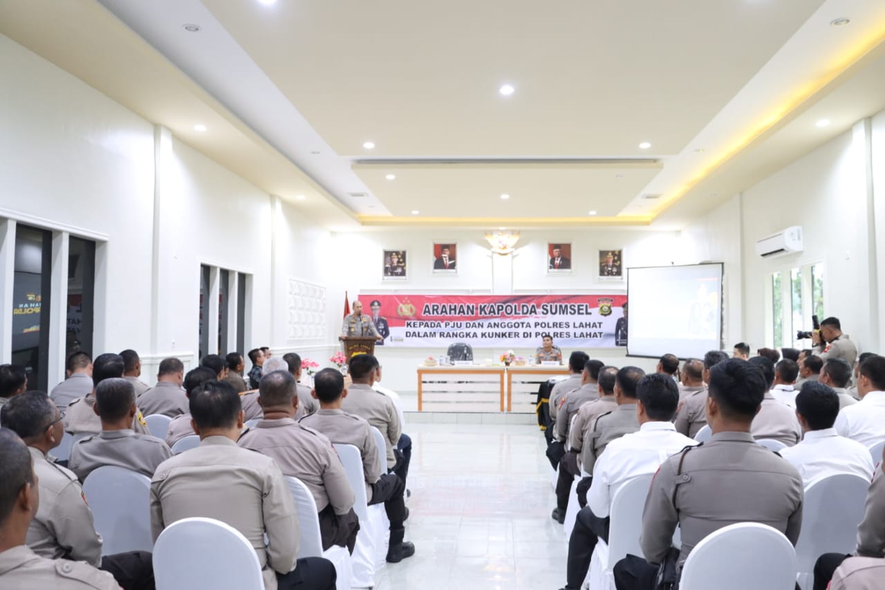 Sekaligus, Kapolda Sumsel, Irjen Pol A Rachmad Wibowo SIK memberikan arahan terhadap personel Polres Lahat.