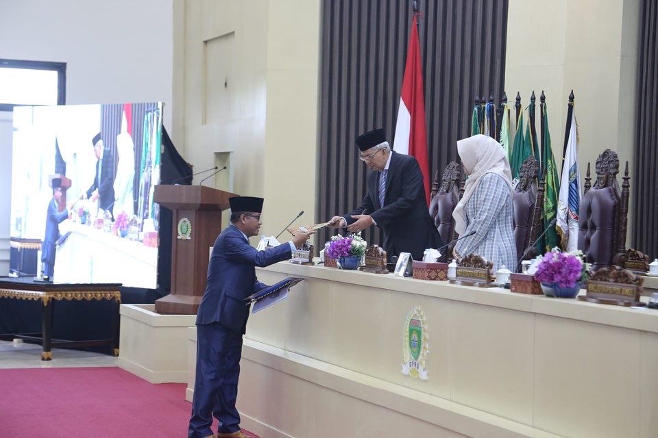 Usai mendengarkan laporan hasil reses ditandatangani oleh Wakil Ketua DPRD Sumsel, Kartika Sandra Desi disaksikan Wagub Mawardi Yahya.