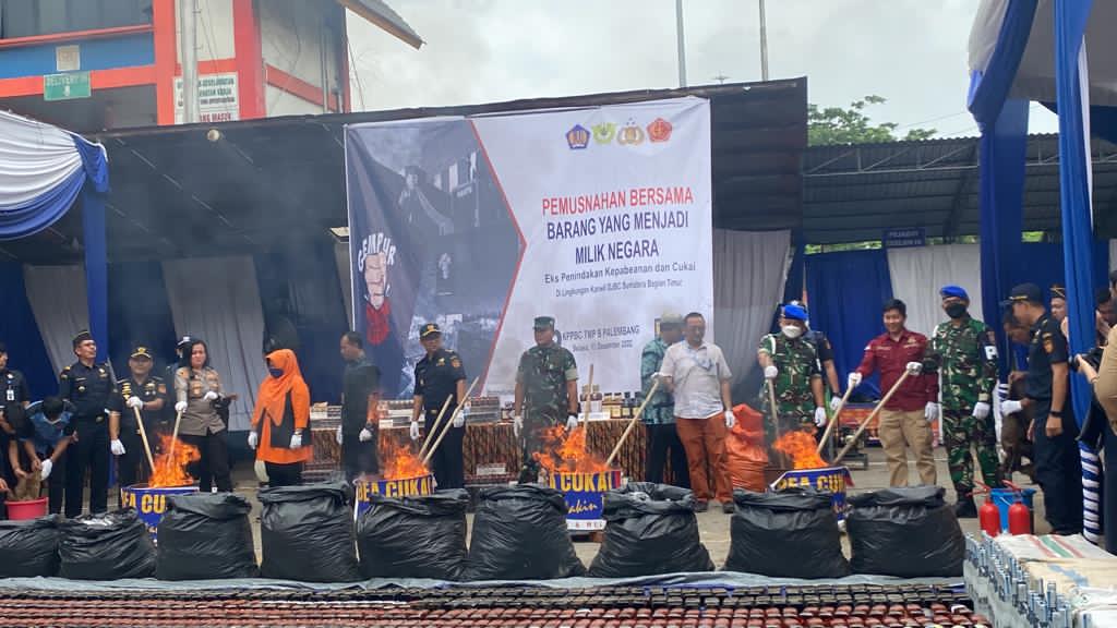 KATANDA.ID, Palembang – Pemusnahan Bersama Barang Yang Menjadi Milik Negara Eks Penindakan Kepabean dan Cukai Dilingkungan Kanwil DJBC Sumatera Bagian Timur, KPPBC TIMP B Palembang. Selasa (13/12/2022).