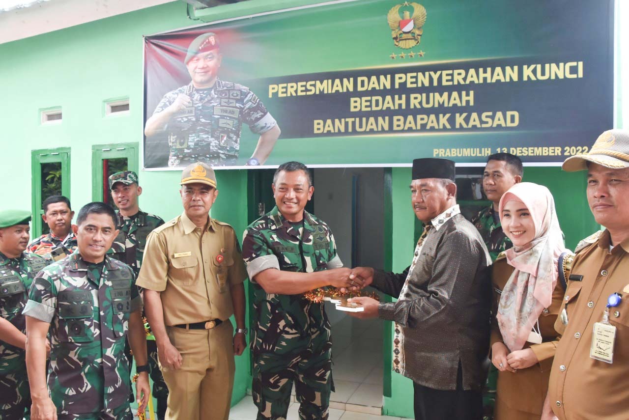 Kasdam II/Sriwijaya dalam sambutannya mengucap syukur atas terlaksananya pembangunan RTLH, hingga pada giat peresmian bantuan rumah dari Bapak Kasad yang salah satunya diperuntukan untuk warga Wonosari Kota Prabumulih.