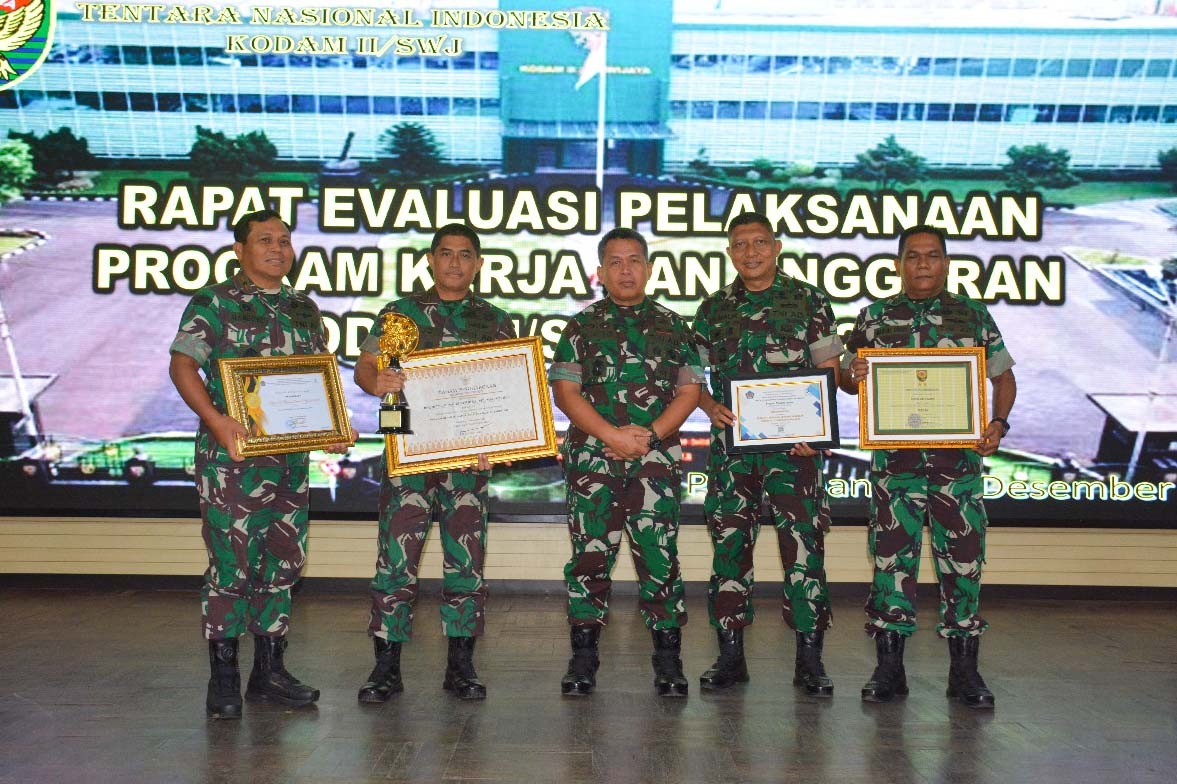 Tidak hanya itu, dalam kegiatan tersebut, dilaksanakan penyerahan penghargaan kepada Satker yang berprestasi yakni, kepada Danrem 041/Gamas yang mendapatkan prestasi satuan kerja terbaik kategori administrasi SKPP. Kemudian, Danrem 044/Gapo mendapatkan prestasi terbaik pertama Inovasi Terfavorit Tayangan “One Day One Innovation” dan kepada Komandan Detasemen Markas Kodam II/Swj mendapatkan prestasi terbaik kedua penilaian Laporan Keuangan Semester – I TA. 2022 dan Komandan Kodim 0415/Jambi, mendapatkan prestasi terbaik pertama kategori nilai kinerja anggaran Satker jajaran Kodam II/Swj dan peringkat 10 tingkat Angkatan Darat kategori nilai kinerja anggaran Satker jajaran Angkatan Darat.