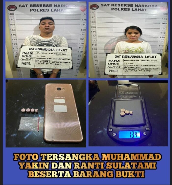 KATANDA.ID, Lahat – Pasangan suami istri (Pasutri) Sirih bernama Muhammad Yakin (31) salah seorang karyawan swasta warga desa Ujan Mas Lama kecamatan Ujan Mas Kabupaten Muara Enim, dan Ranti Sulatami (31) seorang Ibu Rumah Tangga (IRT) warga Desa Lingga II kecamatan Lawang Kidul Kabupaten Muara Enim terpaksa berurusan dengan Team Walet Satresnarkoba Polres Lahat.