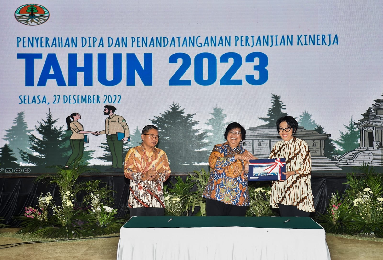 Dalam keterangan pers Kementerian LHK, Menteri Siti Nurbaya menyampaikan pencapaian target pembangunan LHK yang sudah tercantum dalam DIPA Tahun 2023, dan komitmen dari pejabat tinggi dalam mengawal pelaksanaan anggaran yang dituangkan dalam perjanjian kinerja, merupakan komitmen bersama untuk menandai pelaksanaan anggaran Kementerian LHK Tahun Anggaran 2023.