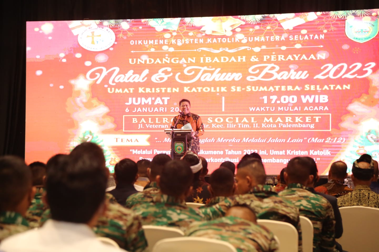 Hal itu dikatakan Gubernur Sumsel H Herman Deru ketika hadir dalam perayaan natal oikumene kristen katolik, TNI, Polri dan ASN Sumsel di SoMa Grand Ballroom Palembang, Jum’at (6/1) malam.