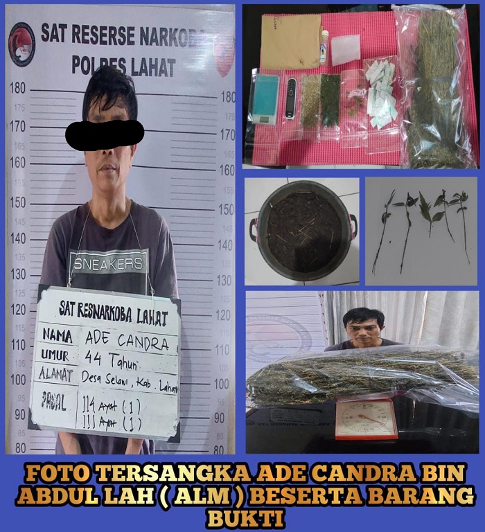 KATANDA.ID, Lahat – Ade Candra (44) warga Kelurahan Kebon Bawang Kecamatan Tanjung Priok Kota Jakarta Utara terpaksa dibawa oleh Satres Narkoba Polres Lahat, pasalnya pria berstatus sebagai seniman tersebut ditangkap karena dugaan Narkotika Jenis Ganja.