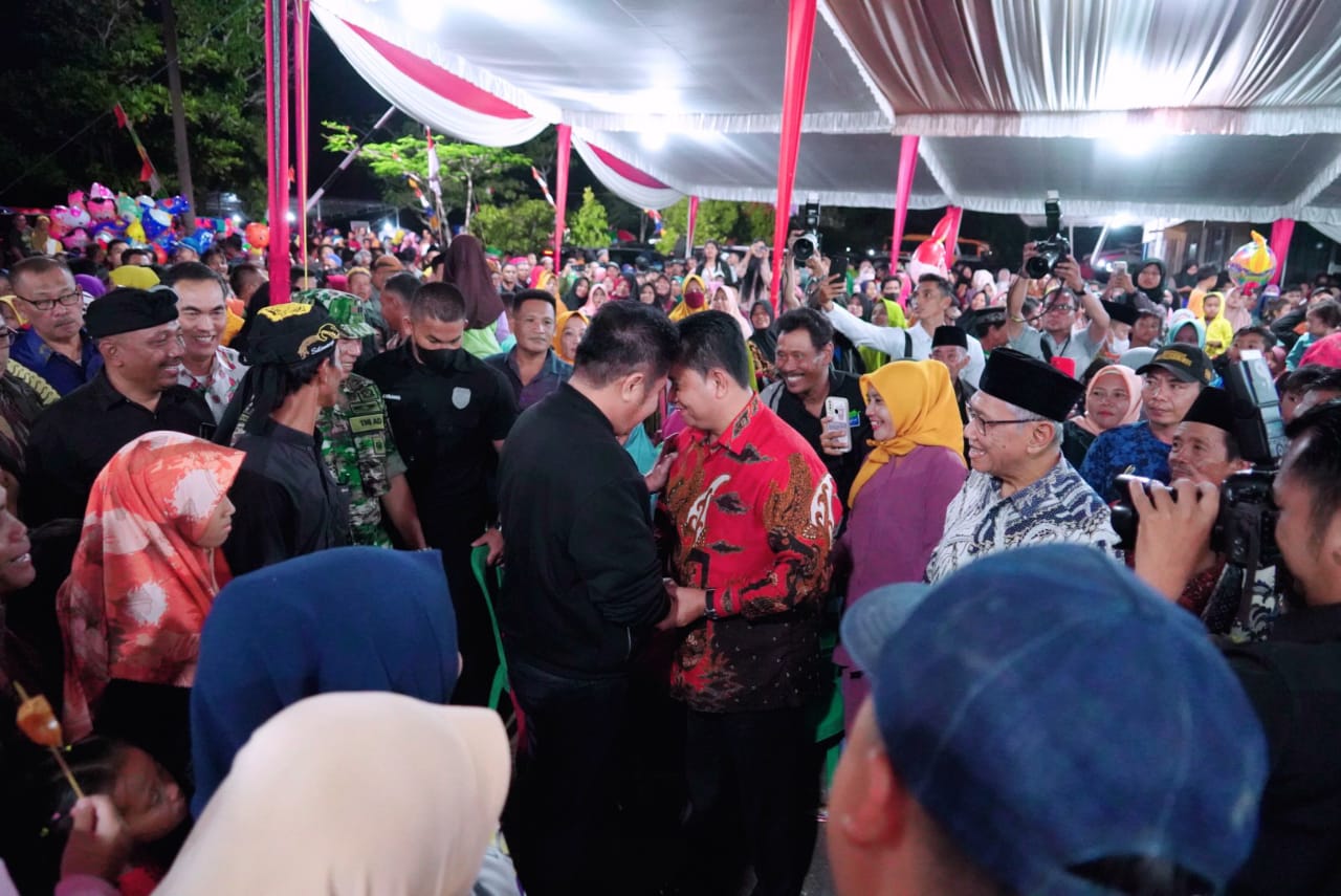 KATANDA.ID, Banyuasin | Gubernur Sumsel H. Herman Deru bersama Bupati Banyuasin, H. Askolani didampingi Wabup H.Slamet, menghadiri pagelaran wayang kulit semalam suntuk, dalam rangka HUT Banyuasin ke 21 tahun dan HUT TVRI Sumsel ke 49 tahun, bertempat di Kota Terpadu Mandiri Telang, Kecamatan Tanjung Lago, Sabtu, (04/02).