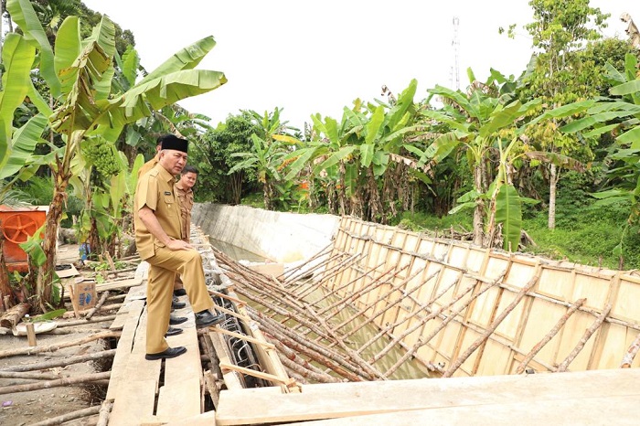 KATANDA.ID, Sekayu – Pembangunan infrastruktur dinding penahan air dibawah jembatan Air Gudang Asap Desa Sukarami Kecamatan Sekayu, Senin (6/2/2023) ditinjau langsung oleh Pj Bupati Apriyadi Mahmud.