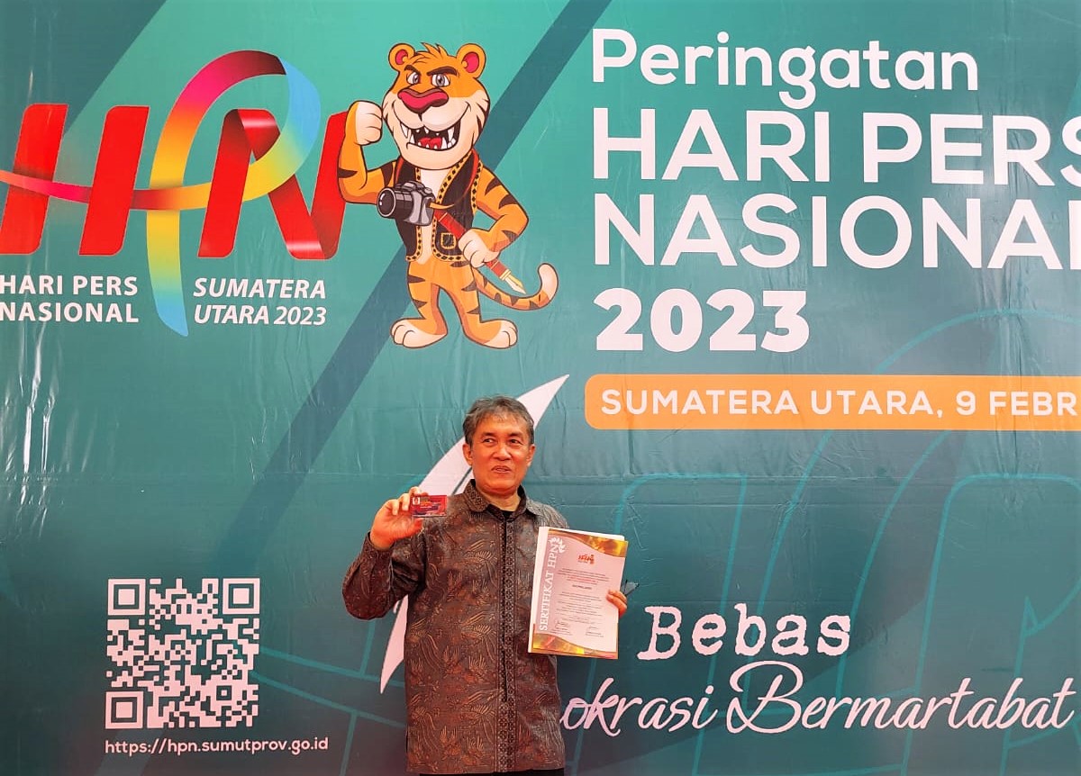 KATANDA.ID, Medan – Maspril Aries Pemimpin Redaksi Katanda.id pada peringatan Hari Pers Nasional (HPN) 2023 di Medan mendapat penghargaan bergengsi Press Card Number One (PCNO) atau Kartu Pers Nomor Satu dari Masyarakat Pers Indonesia yang tergabung dalam penyelengaraan Hari Pers Nasional (HPN) 2023
