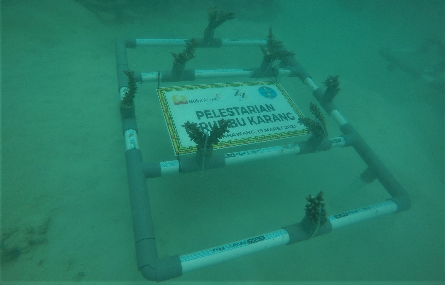 KATANDA.ID, Pesawaran – Komitmen dan kepedulian PT Bukit Asam (PTBA) Tbk sampai ke dasar laut. BUMN tambang dan energi yang berpusat di Tanjung Enim, Sumatera Selatan (Sumsel) belum lama ini membuktikan kepeduliannya dengan melakukan konservasi terumbu karang di dalam laut Pulau Pahawang.