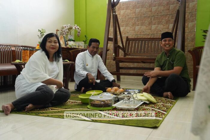 KATANDA.ID, Pangkalpinang – Usai menghadiri salat ied Idul Fitri 1444 Hijriah, Pejabat (Pj) Gubernur Kepulauan Bangka Belitung (Babel), Suganda Pandapotan Pasaribu didampingi istri Maya Suganda Pasaribu beserta jajaran, bersilaturahmi ke kediaman Rektor Universitas Bangka Belitung (UBB) Prof Ibrahim, Sabtu (22/4/2023).