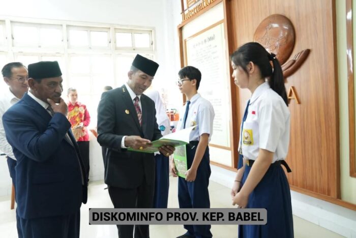 KATANDA.ID, Tanjung Pandan – Pejabat (Pj) Gubernur Kepulauan Bangka Belitung (Babel), Suganda Pandapotan Pasaribu menandatangani Prasasti Penerimaan Peserta Didik Baru Angkatan Pertama Sekolah Menengah Atas (SMA) Keluarga Universal Tahun Ajaran 2023/2024, bertempat di Sekolah Keluarga Universal, Tanjung Pandan, Kamis (27/4/2023).