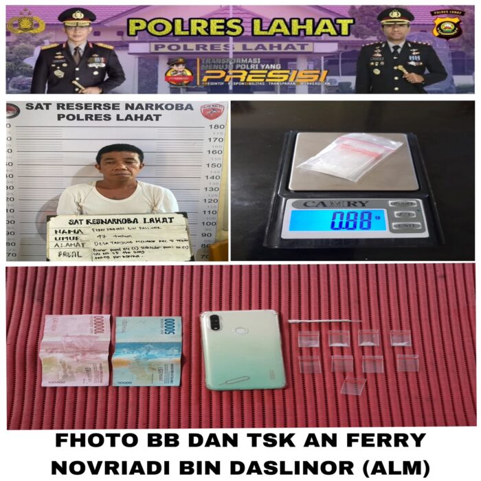 Kapolres Lahat AKBP S Kunto Hartono melalui Kasat Reskrim Narkoba AKP M Romi bersama anggota telah berhasil mengungkap kasus tindak pidana narkotika. Berdasarkan Laporan Polisi Nomor : LP/A/39/IV2023/SPKT.NARKOBA/POLRES LAHAT/POLDA SUMSEL, tanggal 27 April 2023.