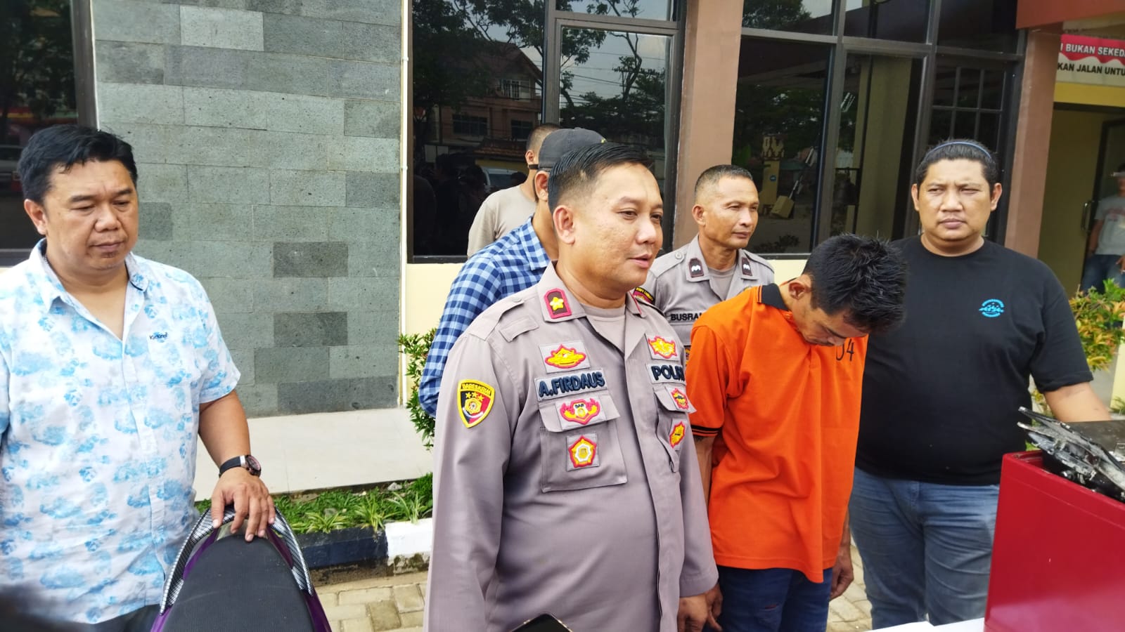 Kapolsek SU I Palembang, Kompol A Firdaus, di dampingi Kanit Reskrim Iptu Indra Widodo, membenarkan tersangka pembobolan toko Mixue sudah berhasil ditangkap anggota unit Reskrim Polsek SU I Palembang.