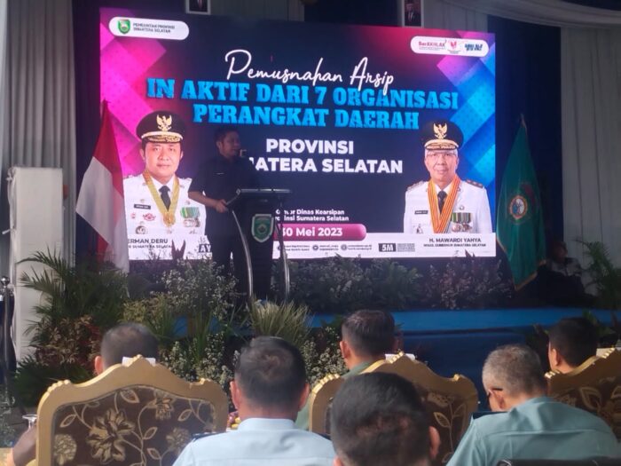 KATANDA.ID, Palembang – Dinas Kearsipan provinsi Sumatra Selatan (Sumsel) melakukan pemusnahan arsip In Aktif yang sekurang-kurangnya 10 tahun dari 7 organisasi perangkat daerah di lingkungan Pemerintah Provinsi (Pemprov) Sumsel, Selasa (30/5/2023).