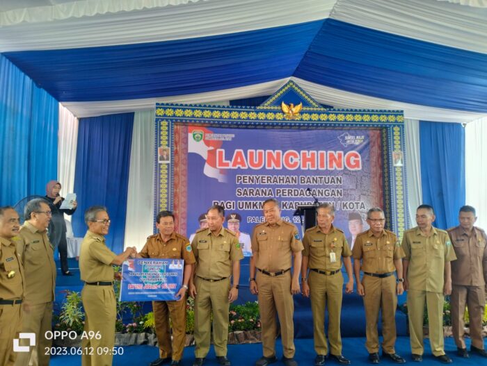 KATANDA ID, Palembang – Launching penyerahan bantuan sarana perdagangan bagi UMKM 17 Kabupaten/Kota di Sumsel dilaksanakan di Kantor Perdagangan Sumsel, Senin (12/6/2023).