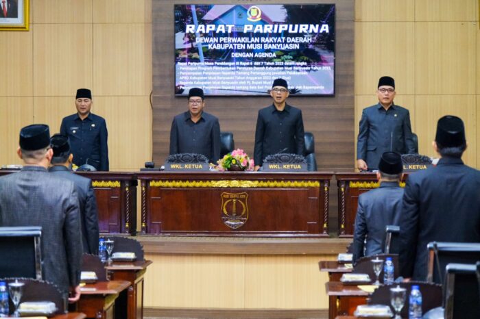 Rapat yang berlangsung di Ruang Rapat Paripurna DPRD Muba itu, dipimpin Wakil Ketua DPRD Muba Jon Kenedi SH, juga turut dihadiri Wakil Ketua dan Anggota DPRD Muba, unsur Forkopimda, Sekretaris Daerah Muba Musni Wijaya SSos MSi, para Asisten, Staf Ahli beserta Kepala Perangkat Daerah Kabupaten Muba, Senin (12/6/2023).