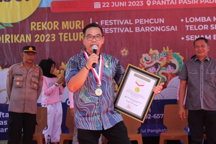 “Alhamdulillah hari ini Pemerintah Kota Pangkalpinang telah resmi mendapat piagam penghargaan rekor MURI. Meski barusan kita berpanas-panasan alhamdulillah berhasil, bukan hanya rekor Indonesia tapi rekor dunia, target 2.023 butir tapi kita berhasil mendirikan 3.500 butir telur,” pungkasnya.