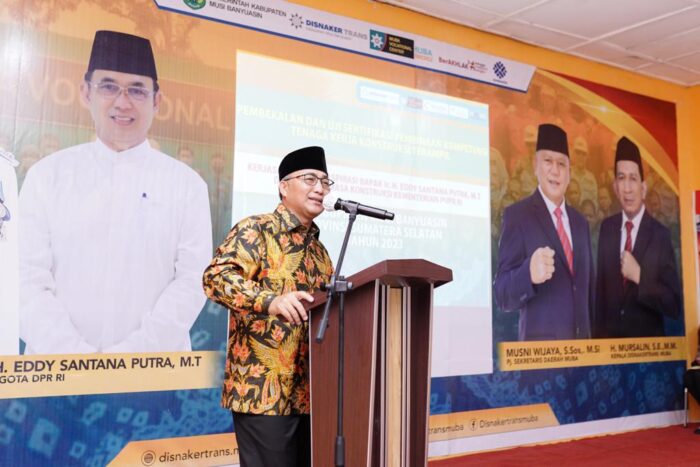“Ucapan terima kasih kepada anggota Komisi V DPR RI Ir H Eddy Santana Putra MT, Kementerian Pekerjaan Umum dan Perumahan Rakyat (PUPR) RI, Balai Jasa Konstruksi Wilayah II Palembang, dan pihak terkait yang telah mewujudkan acara pembekalan yang sangat bermanfaat ini di Kabupaten Muba,” sebutnya.