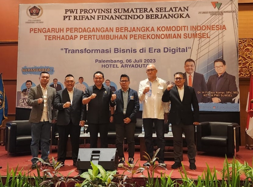 KATANDA.ID, Palembang – Persatuan Wartawan Indonesia Provinsi Sumatra Selatan (PWI Sumsel) bekerja sama dengan PT Rifan Financindo Berjangka (RFB) Palembang menggelar Seminar bertajuk “Pengaruh Perdagangan Berjangka Komoditi Indonesia terhadap Pertumbuhan Perekonomian di Sumsel”, Kamis (6/7/2023) di Hotel Aryaduta Palembang.