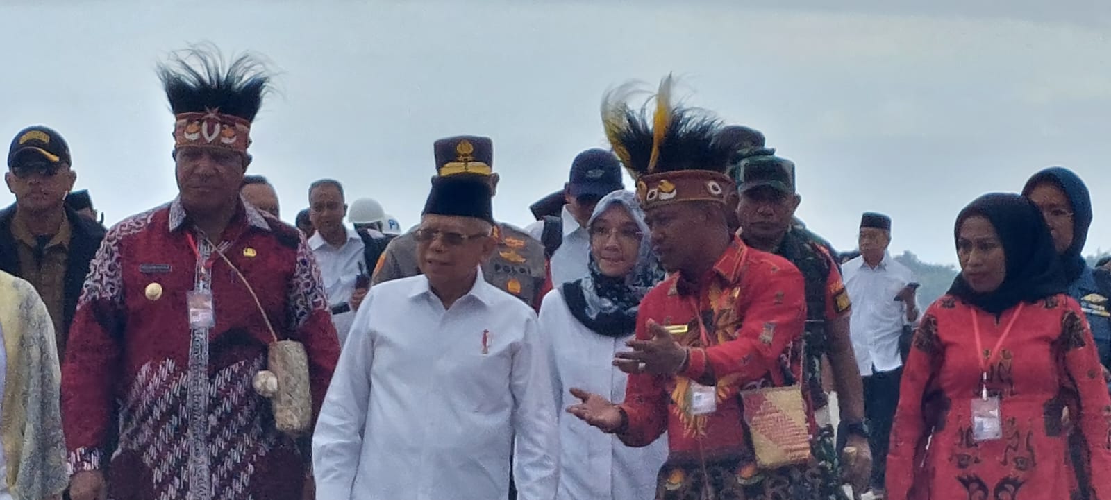 Kehadiran wapres disambut hangat oleh Penjabat Gubernur Papua Barat, Paulus Waterpauw didampingi Ketua TP PKK, Roma Megawanty bersama Kapolda Papua Barat dan Pangdam Kasuari serta Bupati Fakfak, Untung Tamsil dan Kepala-Kepala OPD, Kamis (13/7/2023).